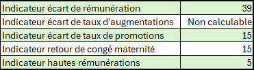 L’index est calculé sur 100 points, et un score inférieur à 75 points sur 100 oblige l’organisation à prendre des mesures correctives.